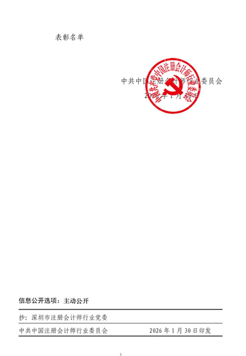 近日,收到中共中國注冊會計師行業(yè)委員會文件《關(guān)于表彰2022-2025年度注冊會計師行業(yè)先進黨組織和優(yōu)秀個人的決定》,我所主任會計師吳林海同志榮獲注冊會計師行業(yè)“優(yōu)秀黨務(wù)工作者”稱號。 此次榮獲“優(yōu)秀黨務(wù)工作者”稱號,不僅是對其個人工作的認可,也是對我所黨建工作的高度肯定。 我所將以此次獲獎為契機,進一步加強黨建工作,深化黨建與業(yè)務(wù)融合,提升服務(wù)質(zhì)量,堅守職業(yè)道德,不斷增強服務(wù)國家戰(zhàn)略、服務(wù)經(jīng)濟發(fā)展、服務(wù)社會公眾的能力。 附件: